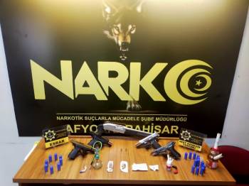 Yapılan aramalarda ise Satışa hazır 2 pakette 1.67 gram esrar maddesi, 2 paket halinde 1.47 gram kenevir tohumu, 3 adet kurusıkıdan bozma tabanca, 1 adet kurusıkı tabanca, 1 adet kısa dipçikli pompalı tüfek, 23 adet av tüfeği kartuşu ve 3 adet uyuşturucu kullanma aparatı ele geçirildi.