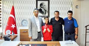 26-28 Haziran tarihleri arasında Sırbistan’ın başkenti Belgrad’ta düzenlenen Tekvando Poomse Avrupa Şampiyonası Serbest Sitilde, büyük bir başarıya imza atarak Avrupa şampiyonluğu ve üçüncülüğü elde eden Eskişehirli tekvandocu Gülsena Karakuyulu’yu, Gençlik Hizmetleri ve Spor İl Müdürü Hüseyin Aksoy makamında ağırladı. Gülsena’yı elde ettiği büyük başarıdan dolayı kutlayan Aksoy, Antrenörü Hakkı Ünal’ı da tebrik etti.