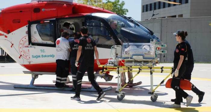 Samsun'da prematüre doğan ve akciğer solunum sıkıntısı bulunan 4 buçuk aylık Uyar bebek, 90 günlük tedavisinin devamı için helikopterle Eskişehir'e getirildi.