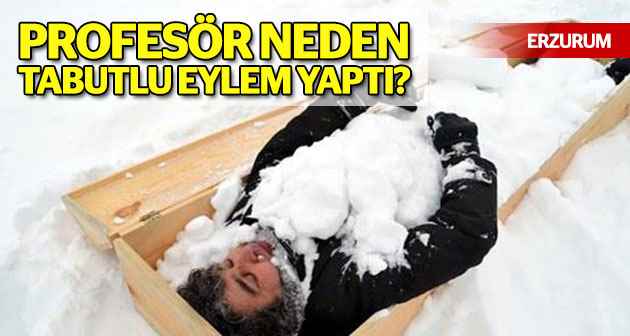 Erzurum'da bir profesör artan terör olaylarına tepki göstermek için eksi 15 derece sıcaklığı gören kentte karla dolu tabuta girdi.