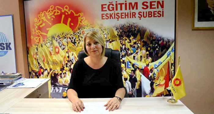 Eğitim Sen Eskişehir Şubesi Özlük ve Hukuk Sekreteri Meserret Yavaş, görevden alınan 4 öğretmen üyeleri...