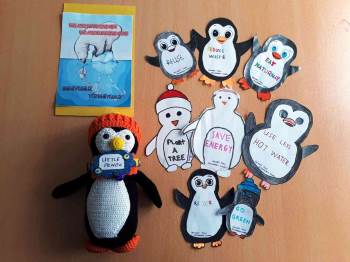 Ankara’dan yola çıkan, “Isınıyoruz, tükeniyoruz” eTwinning projesinin maskotu, Kütahya Hafız İmam Hatip Ortaokulu’na geldi.