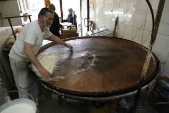 Tarihi Bedesten Çarşısı’nda 40 yıldır bakır tepside tel kadayıf pişirip satan Hakan Güvez, “Ramazan ayının vazgeçilmez tatlısı. Tabiri caizse gariban tatlısı. Baklava gibi tatlıların fiyatları yükseldi. Halkın gücü yettiği kadar tüketiyor. Yaptığımız tatlıyı da biz elimizden geldiğince yıllardır yapmaya çalışıyoruz. Bizim yaptığımız tatlı tamamen natürel, içeriğinde sadece un, su, başka hiçbir katkı maddesi yok. Sıcağın başında en az 250 derecelik tepside tel kadayıf yapıyoruz. Günlerimiz burada bu şekilde çalışmakla geçiyor” dedi.