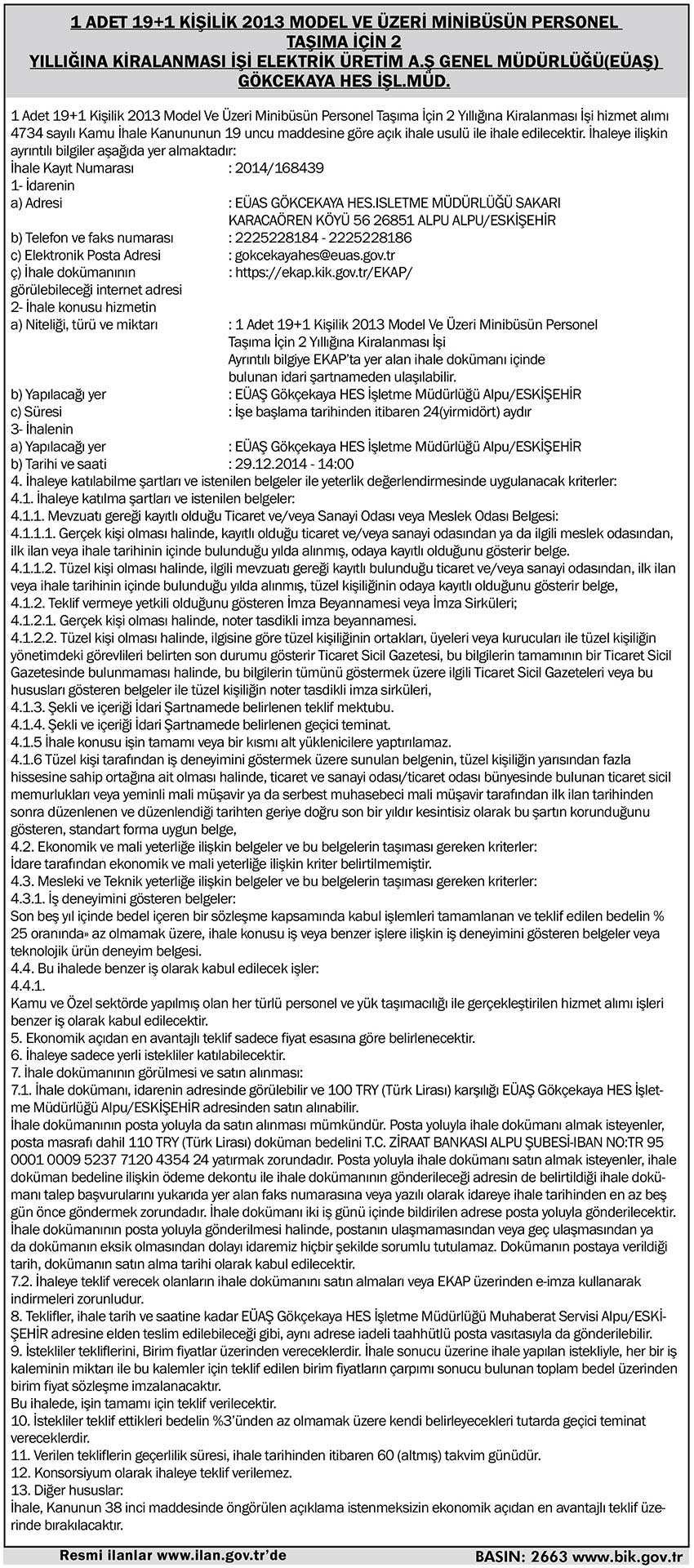 1 ADET 19+1 KİŞİLİK 2013 MODEL VE ÜZERİ MİNİBÜS...