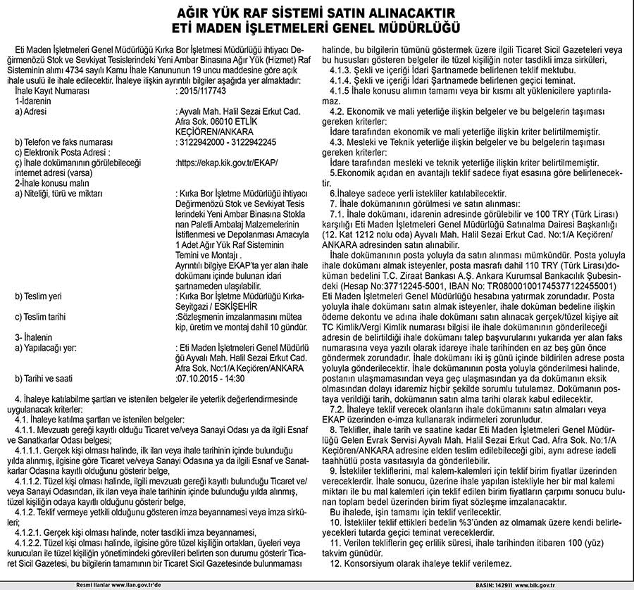 AĞIR YÜK RAF SİSTEMİ ALINACAKTIR