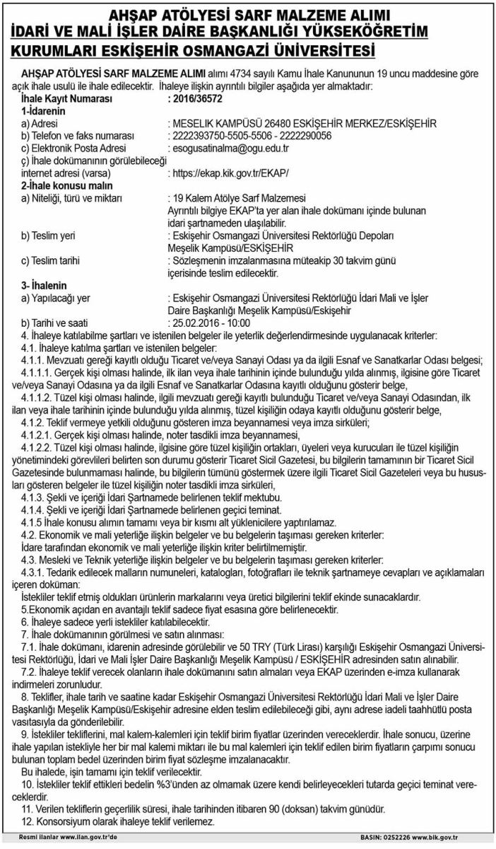 AHŞAP ATÖLYESİ SARF MALZEME ALIMI