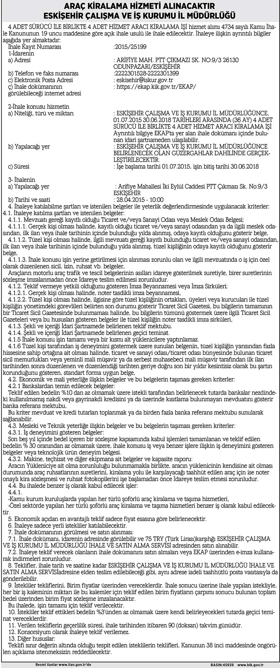 ARAÇ KİRALAMA HİZMETİ ALINACAKTIR