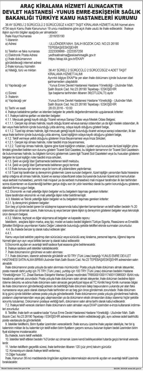 ARAÇ KİRALAMA HİZMETİ ALINACAKTIR