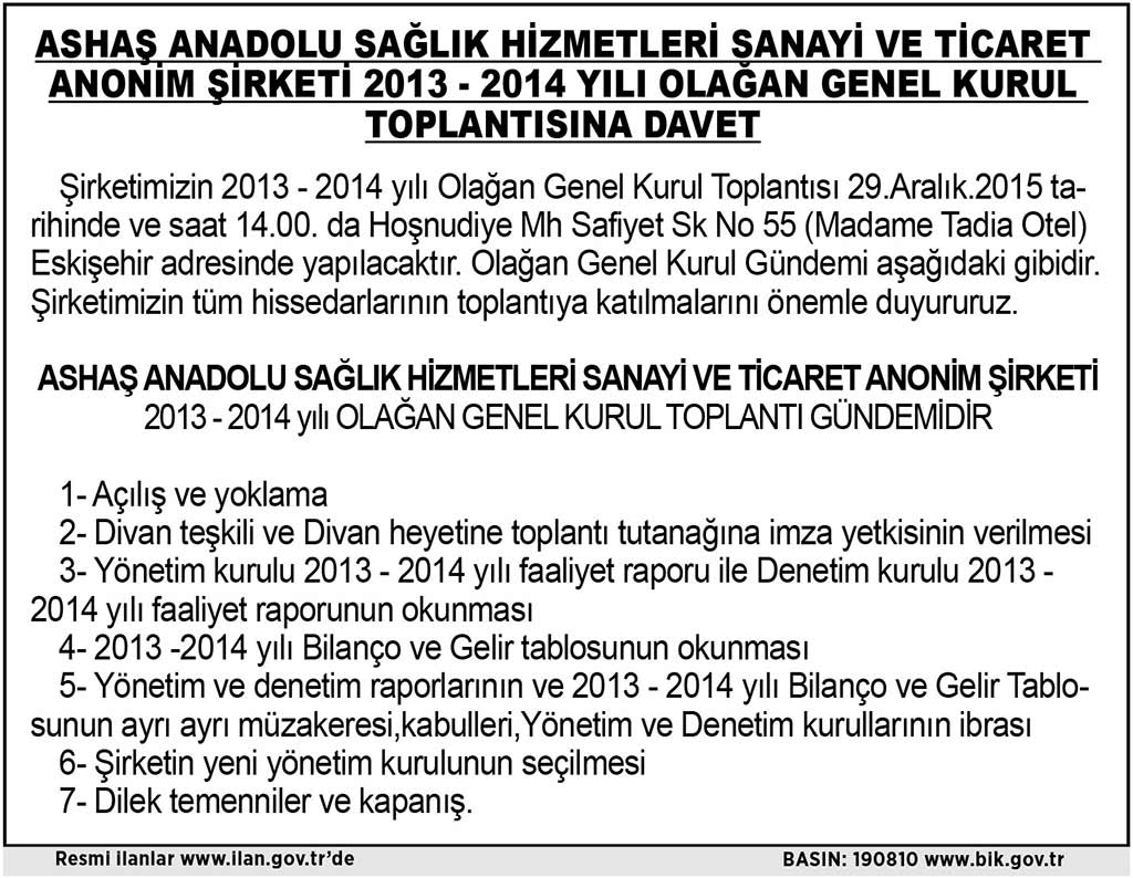 ASHAŞ ANADOLU SAĞLIK HİZMETLERİ