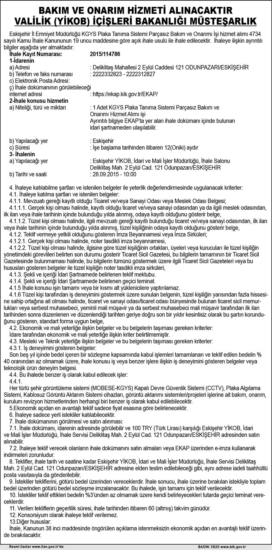 BAKIM VE ONARIM HİZMETİ ALINACAKTIR