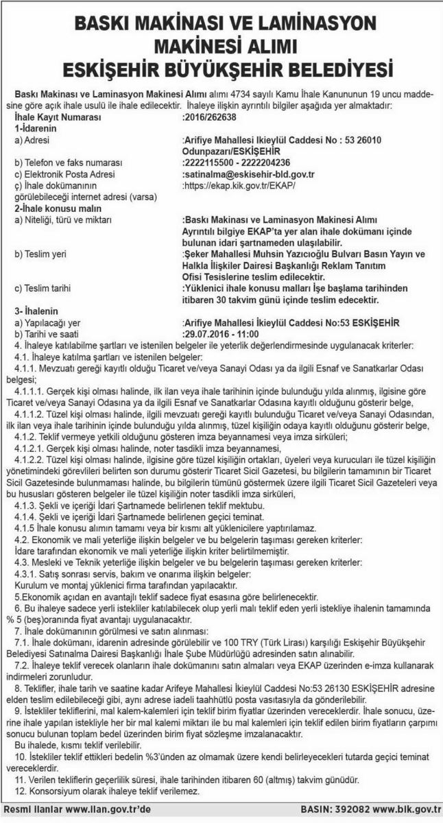 BASKI MAKİNASI VE LAMİNASYON MAKİNASI ALIMI