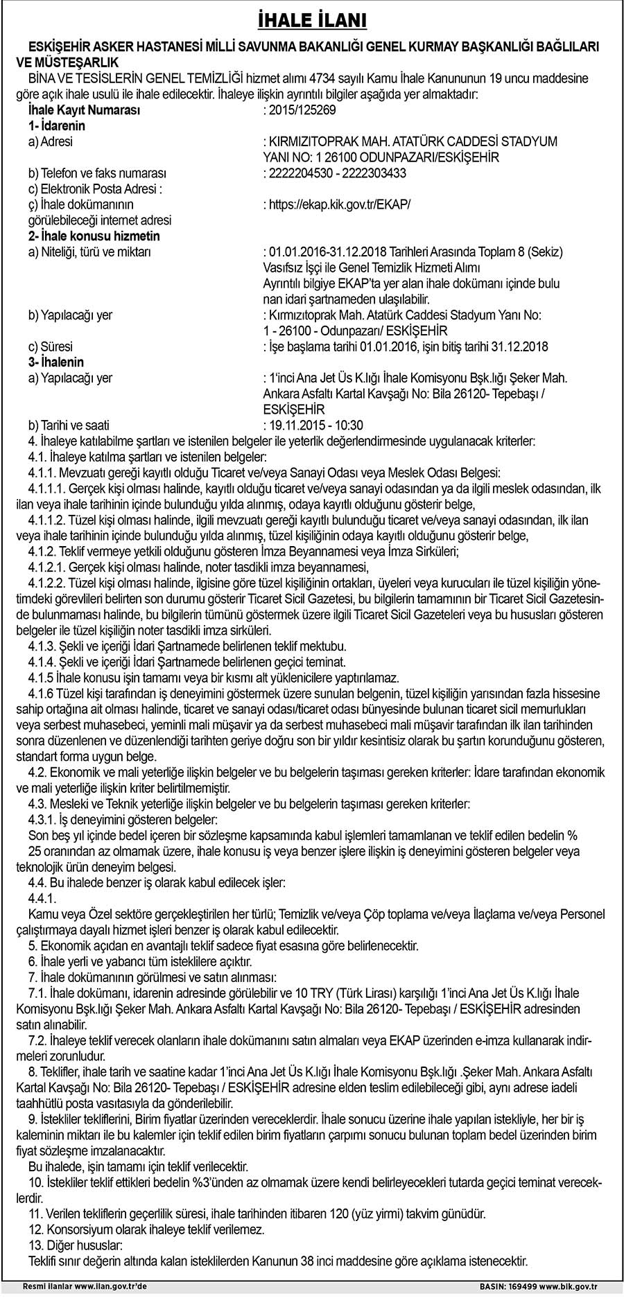 BİNA VE TESİS GENEL TEMİZLİĞİ - İHALE İLANI