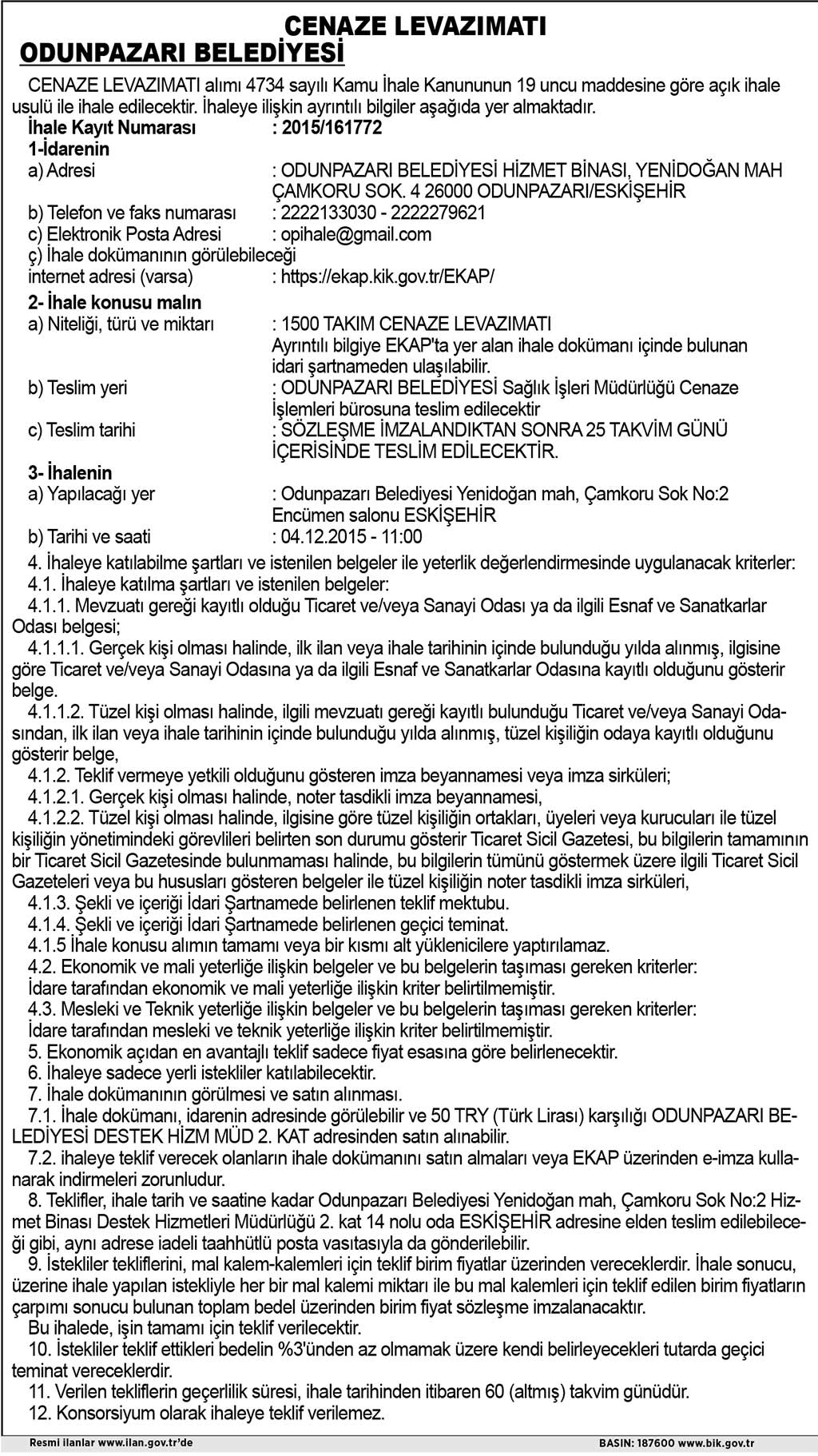 CENAZE LEVAZIMANI - ODUNPAZARI BELEDİYESİ