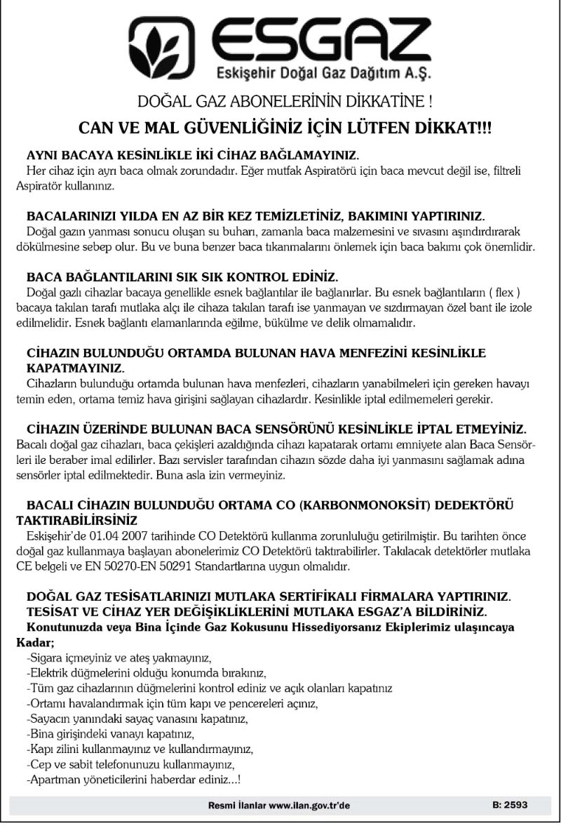 DOĞALGAZ ABONELERİNİN DİKKATİNE