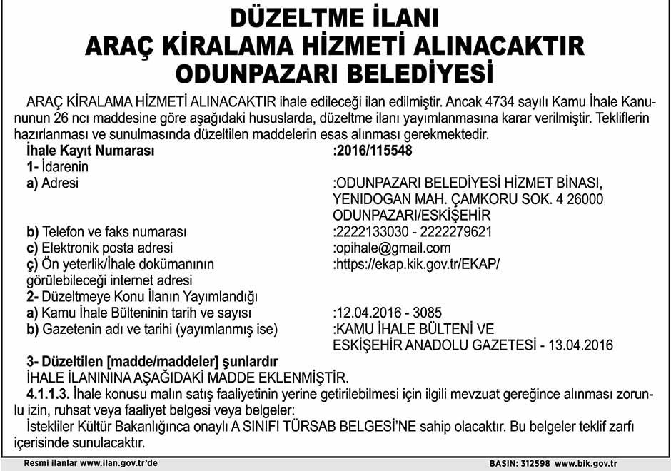 DÜZELTME İLANI ARAÇ KİRALAMA HİZMETİ...