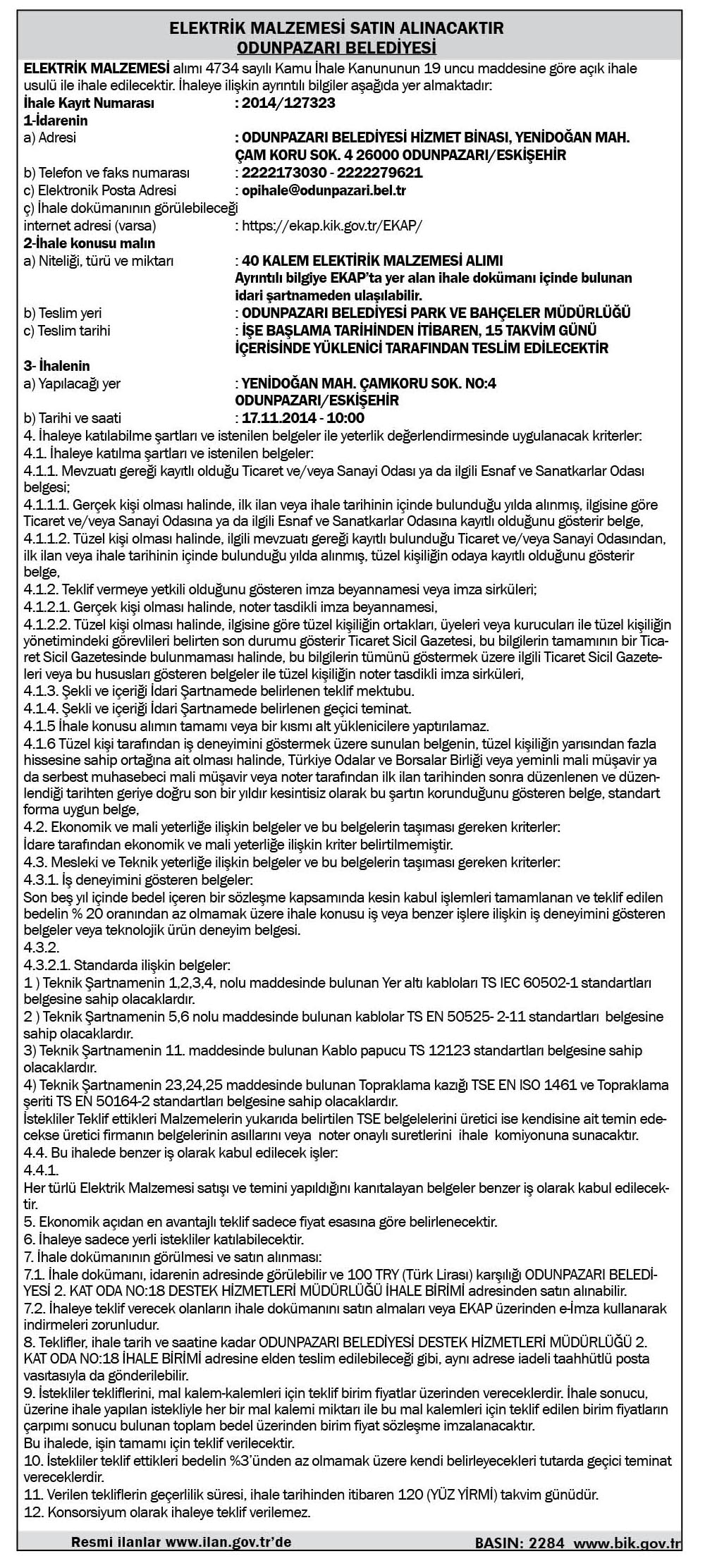 ELEKTRİK MALZEMESİ SATIN ALINACAKTIR
