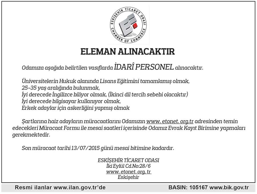 ELEMAN ALINACAKTIR - ESKİŞEHİR TİCARET ODASI
