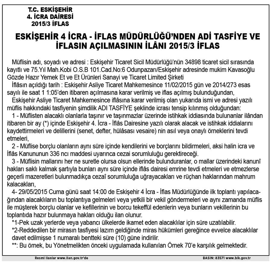 ESKİŞEHİR 4 İCRA - İFLAS MÜDÜRLÜĞÜ'NDEN ADİ TASFİYE VE...