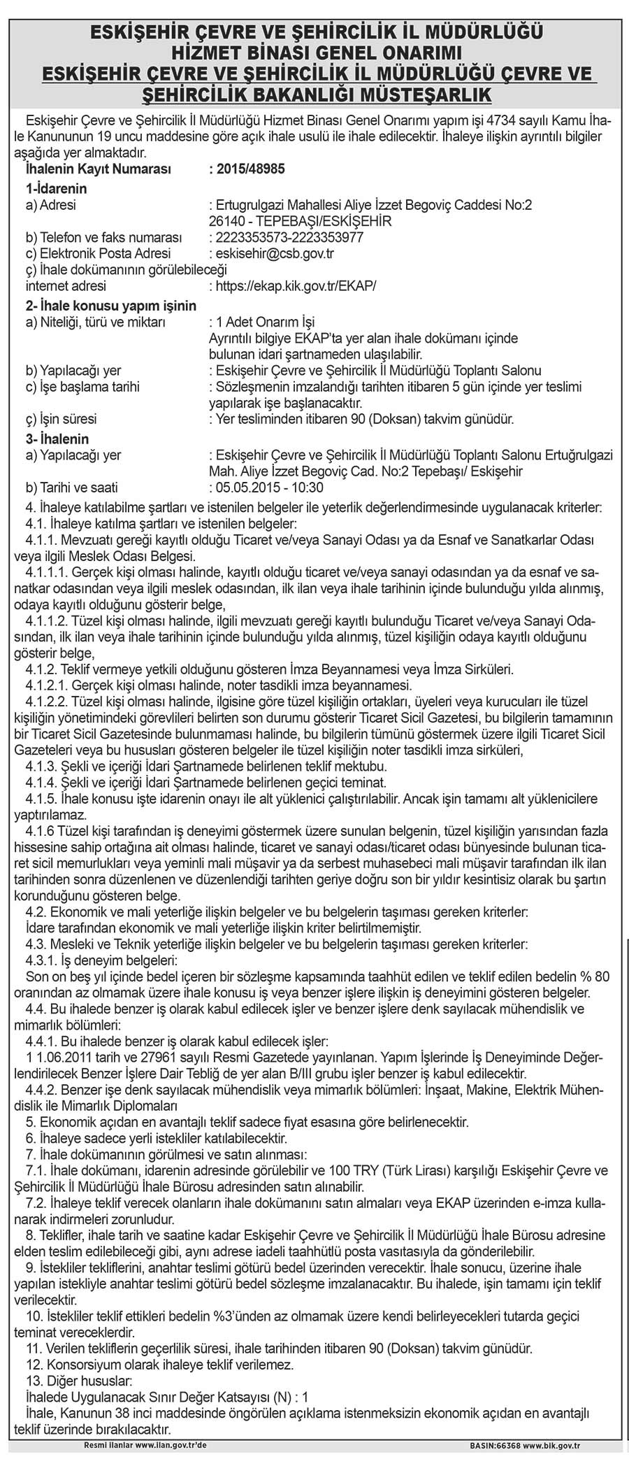 ESKİŞEHİR ÇEVRE VE ŞEHİRCİLİK İL MÜDÜRLÜĞÜ