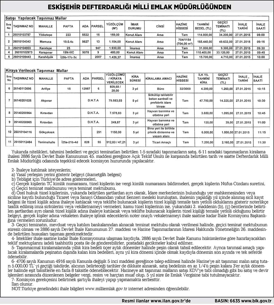 ESKİŞEHİR DEFTERDARLIĞI MİLLİ EMLAK MÜDÜRLÜĞÜ