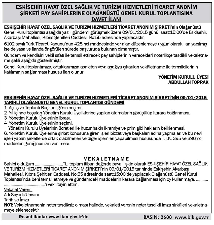 ESKİŞEHİR HAYAT ÖZEL SAĞLIK VE TURİZM...