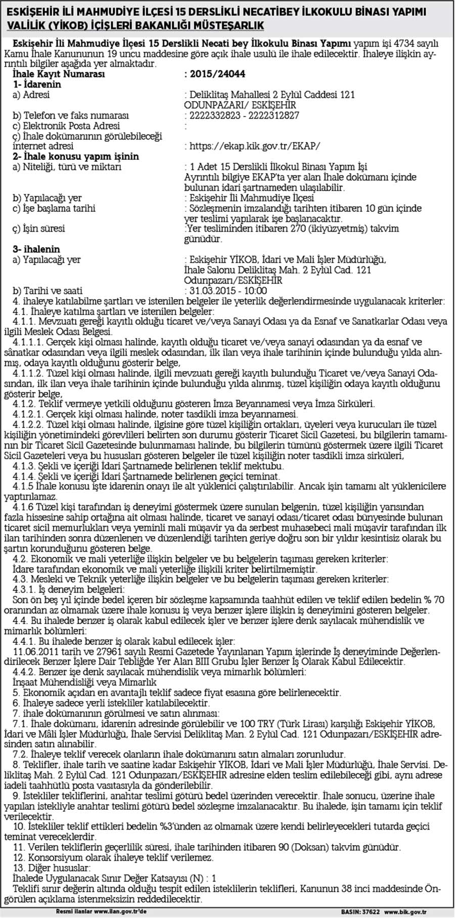 ESKİŞEHİR İLİ MAHMUDİYE İLÇESİ 15 DERSLİK NECATİBEY İLKOKULU...