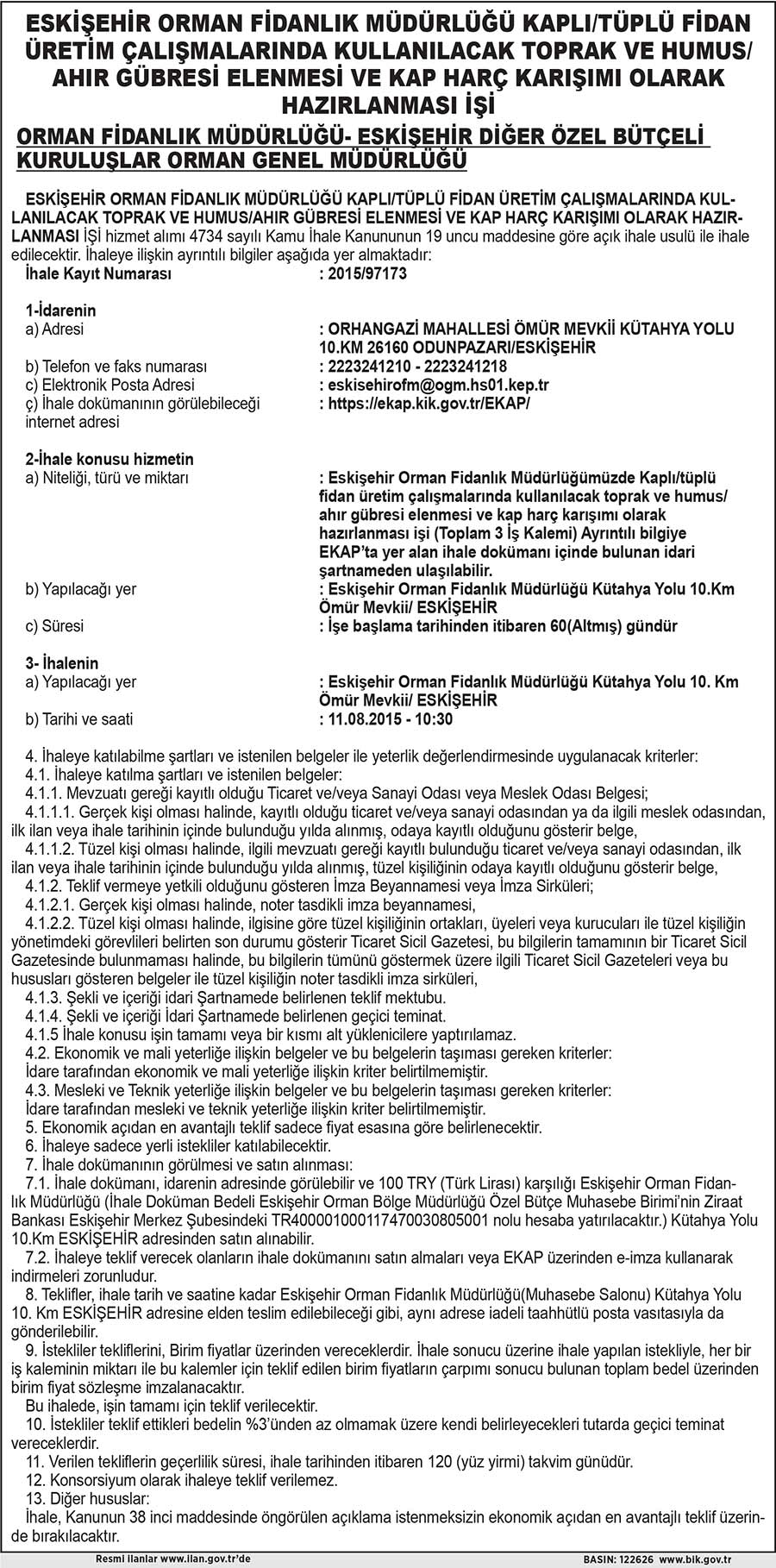ESKİŞEHİR ORMAN FİDANLIK MÜDÜRLÜĞÜ KAPLI/TÜPLÜ FİDAN