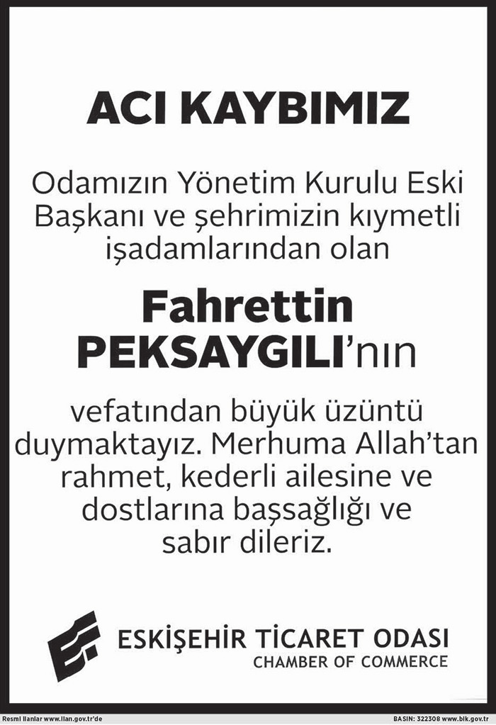 ESKİŞEHİR TİCARET ODASI - ACI KAYBIMIZ