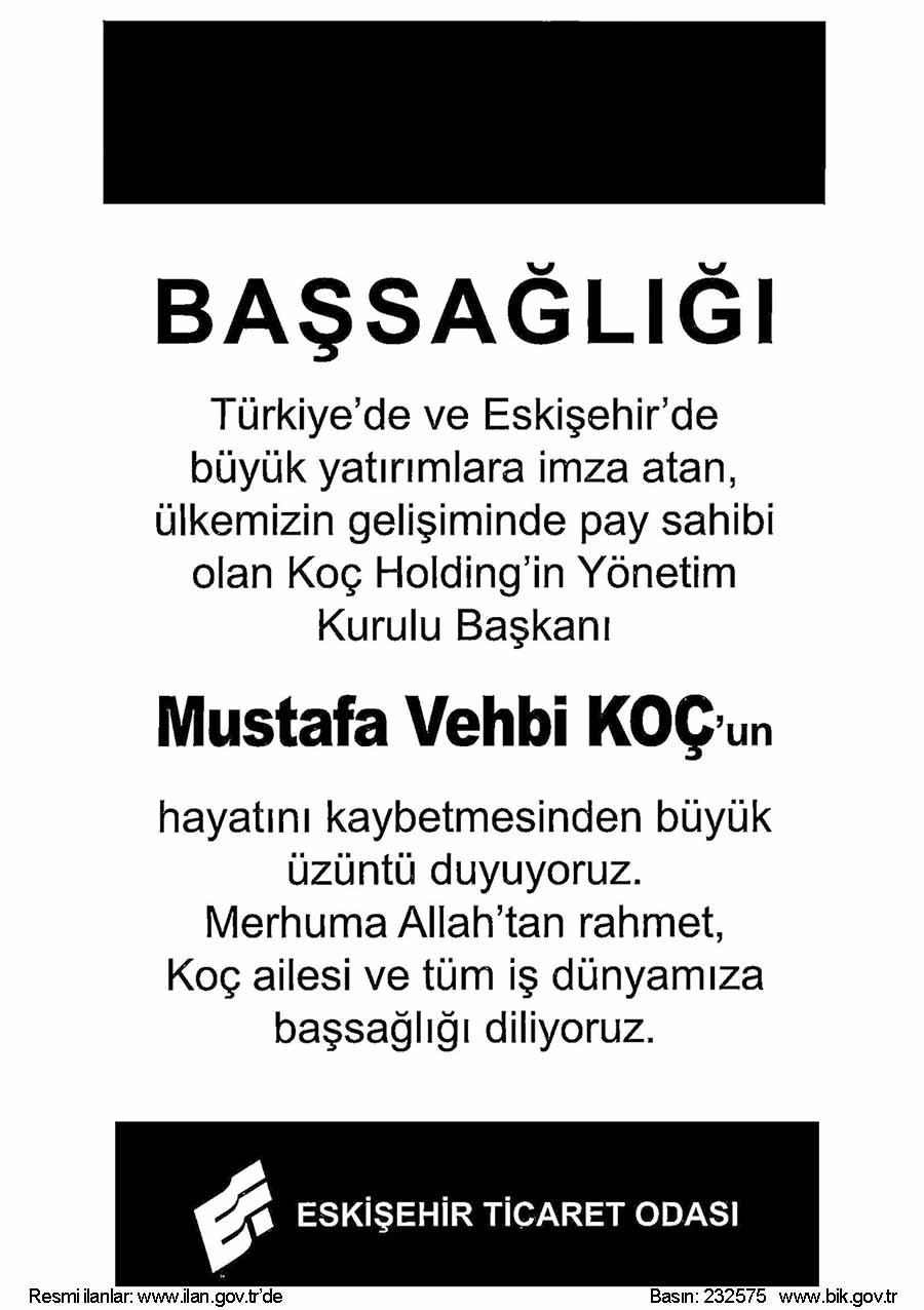 ESKİŞEHİR TİCARET ODASI BAŞSAĞLIĞI