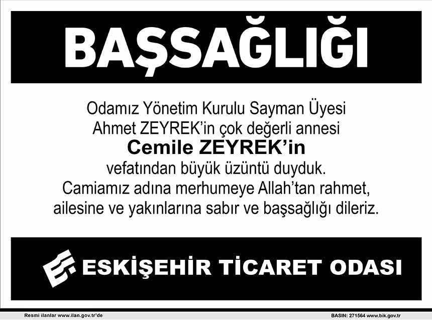 ESKİŞEHİR TİCARET ODASI BAŞSAĞLIĞI