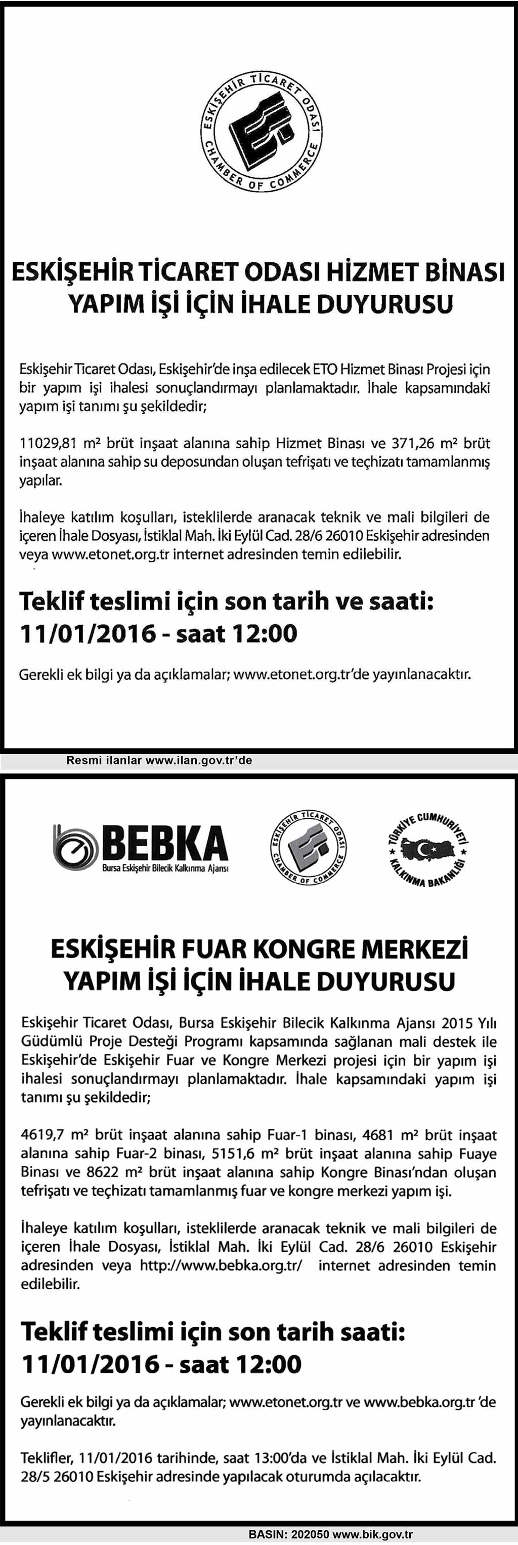 ESKİŞEHİR TİCARET ODASI İHALE DUYURUSU / BEBKA İHALE DUYURUSU
