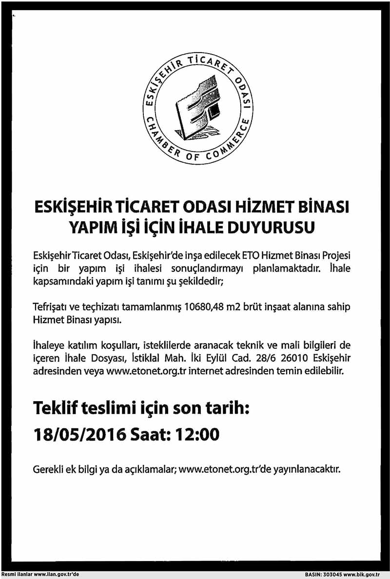 ESKİŞEHİR TİCARET ODASI İHALE DUYURUSU