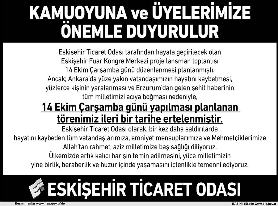 ESKİŞEHİR TİCARET ODASI'NDAN DUYURU