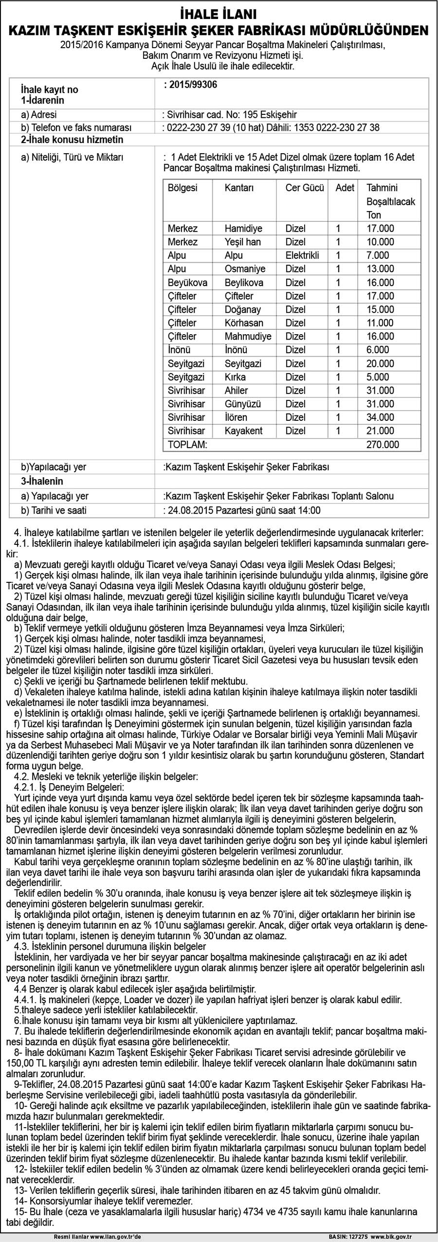 İHALE İLANI - ŞEKER FABRİKASI MÜDÜRLÜĞÜ