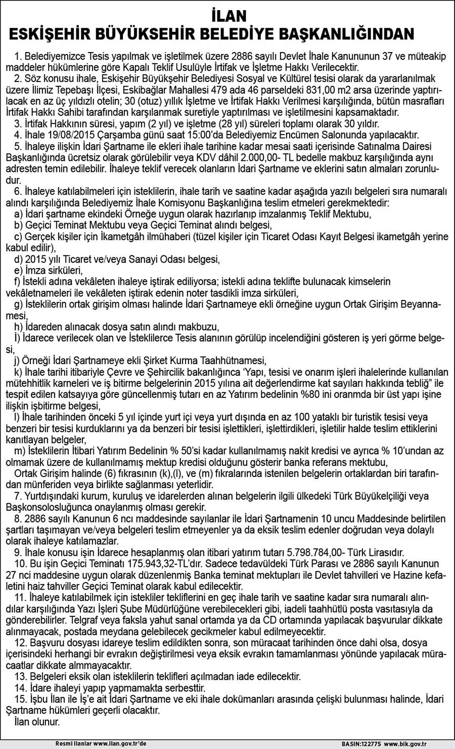 İLAN - ESKİŞEHİR BÜYÜKŞEHİR BELEDİYE BAŞKANLIĞI