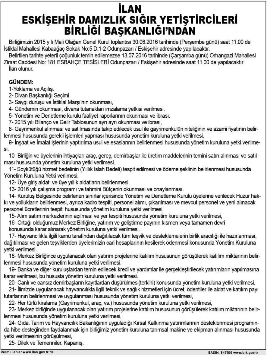 İLAN - ESKİŞEHİR DAMIZLIK SIĞIR YETİŞTİRİCİLERİ...