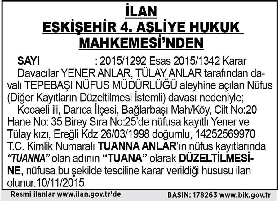 İLAN ESKİŞEHİR 4. ASLİYE HUKUK MAHKEMESİ'NDEN