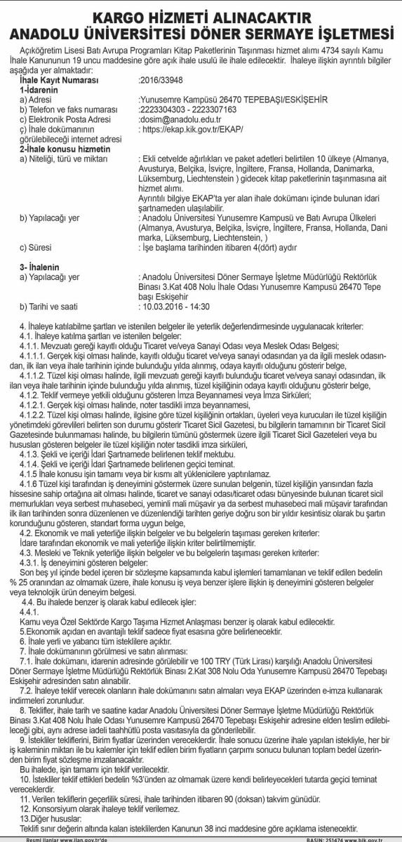 KARGO HİZMETİ ALINACAKTIR