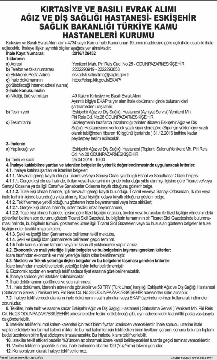 KIRTASİYE VE BASILI EVRAK ALIMI