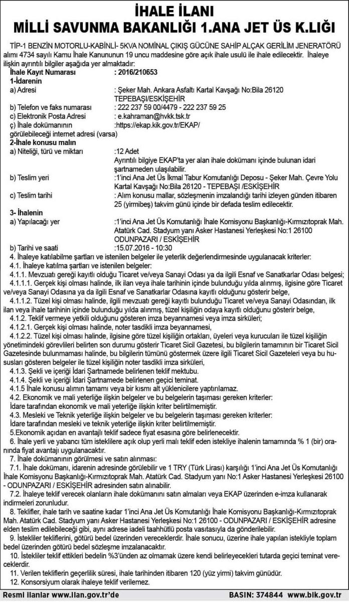 MİLLİ SAVUNMA BAKANLIĞI İHALE İLANI