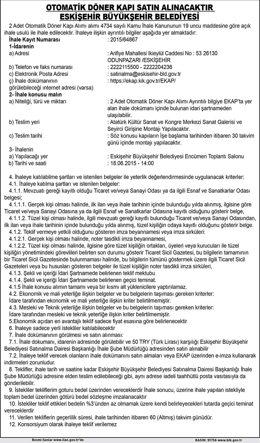 OTOMATİK DÖNER KAPI SATIN ALINACAKTIR