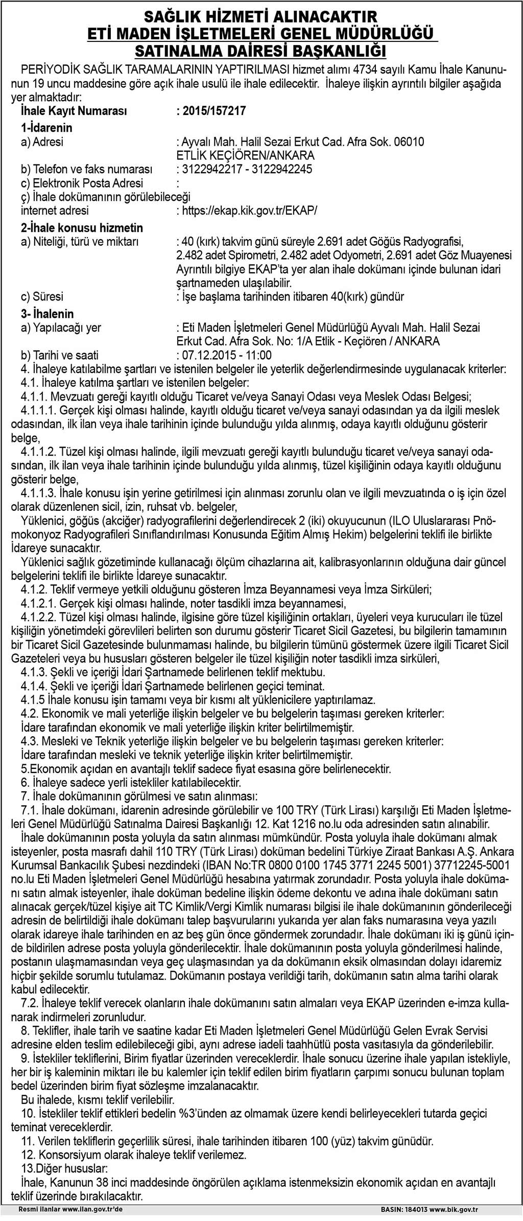 SAĞLIK HİZMETİ ALINACAKTIR - ETİ