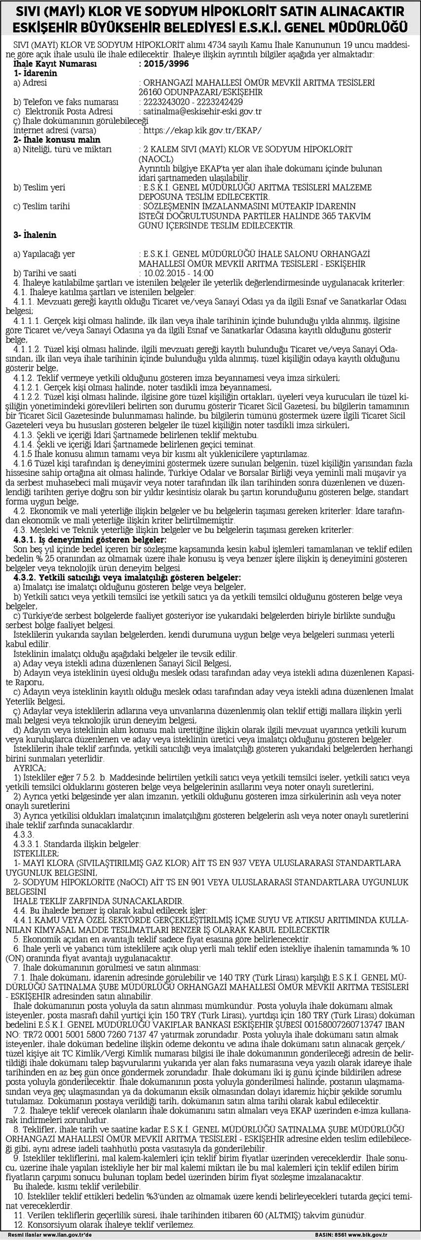 SIVI (MAYİ) KLOR VE SODYUM HİPOKLORİT SATIN ALINACAKTIR