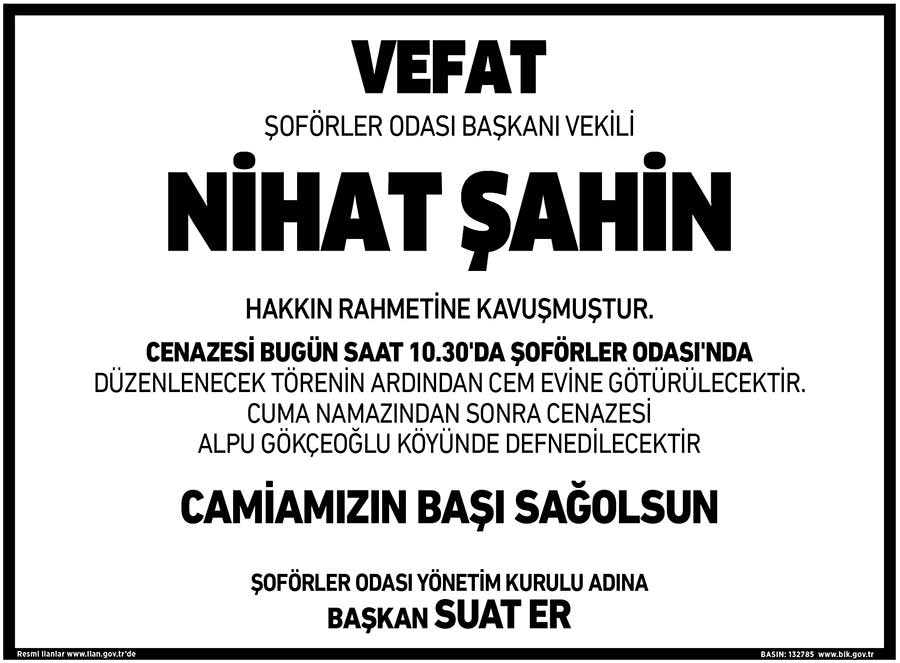 ŞOFÖRLER ODASI ADINA TAZİYE MESAJI