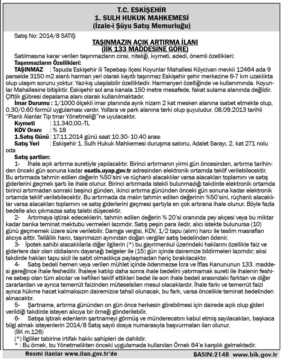 T.C. ESKİŞEHİR 1. SULH MAHKEMESİ