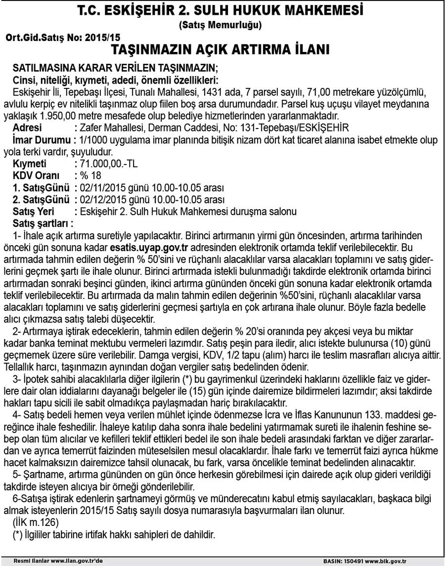 T.C. ESKİŞEHİR 2. SULH HUKUK MAHKEMESİ