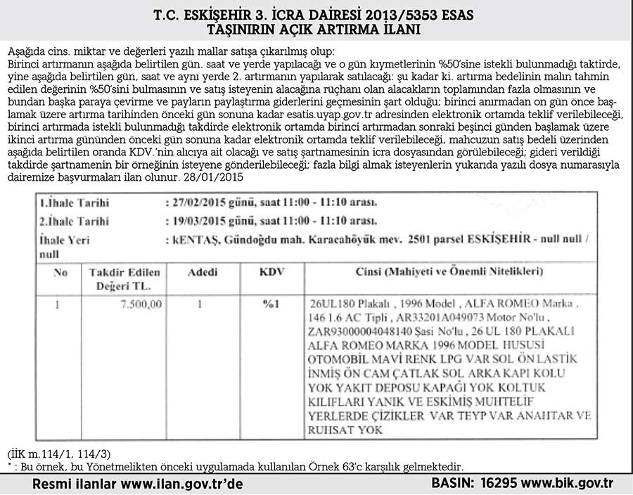 T.C. ESKİŞEHİR 3. İCRA DAİRESİ 2013/5353 ESAS