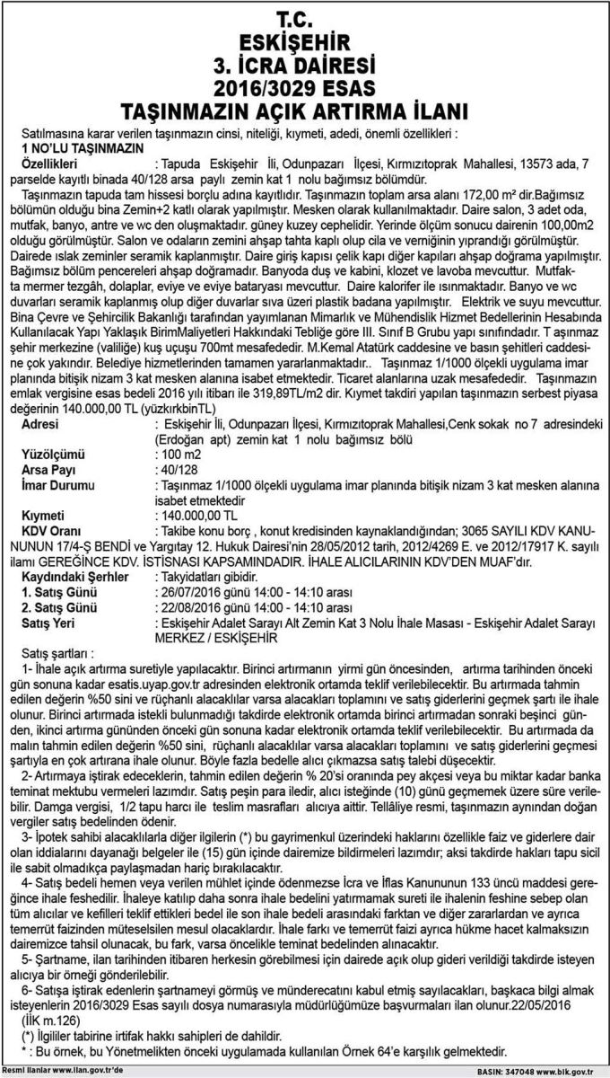 T.C. ESKİŞEHİR 3. İCRA DAİRESİ