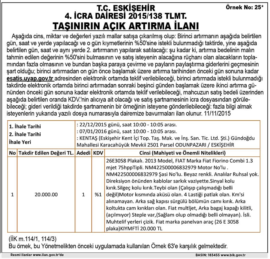 T.C. ESKİŞEHİR 4. İCRA DAİRESİ
