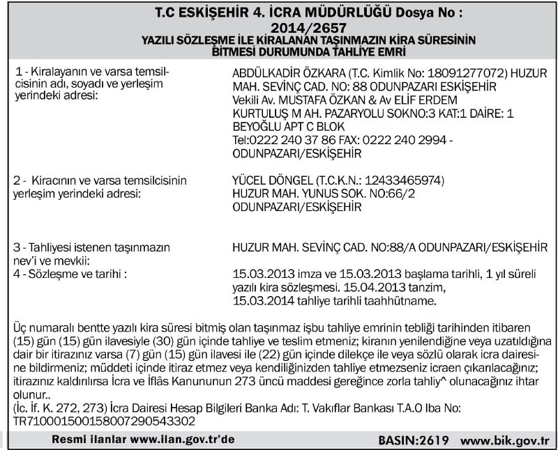 T.C. ESKİŞEHİR 4. İCRA MÜDÜRLÜĞÜ